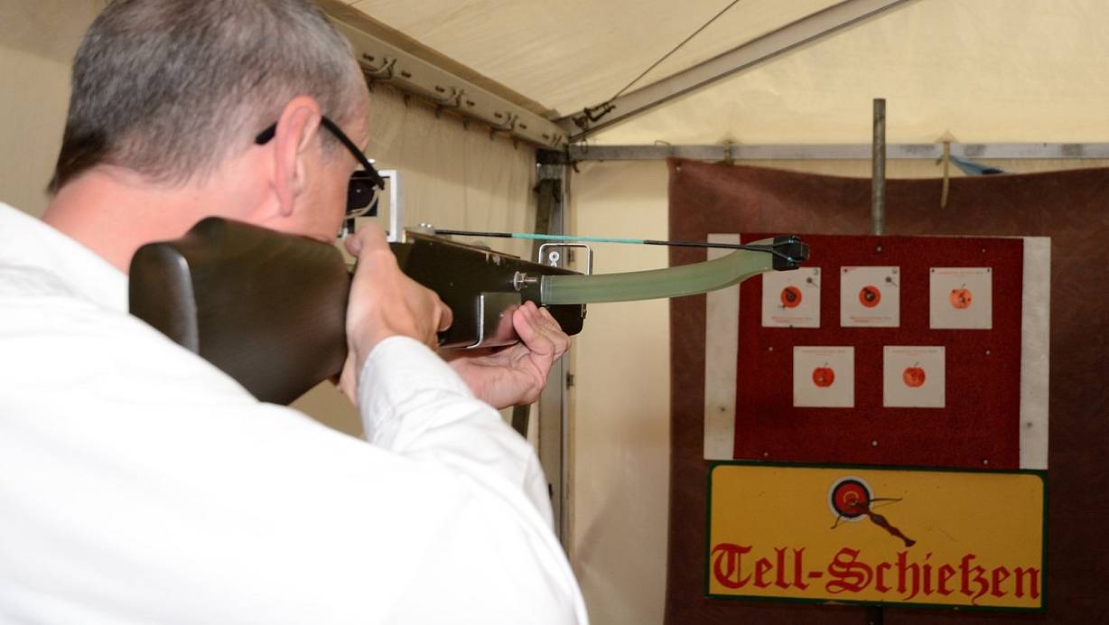 Die Siedlergemeinschaft Bad Driburg lädt auch in diesem Jahr Vereine, Mannschaften, Kegelklubs und Firmen zum „Tell – Schießen“ mit der Armbrust ein. Eine Mannschaft besteht immer aus fünf Personen, Damen, Herren oder auch gemischt. Für das bereits um 14 Uhr beginnende Kinderkönigschießen und Preisschießen für Jugendliche werden die Anmeldungen kurz vorher im Zelt angenommen.